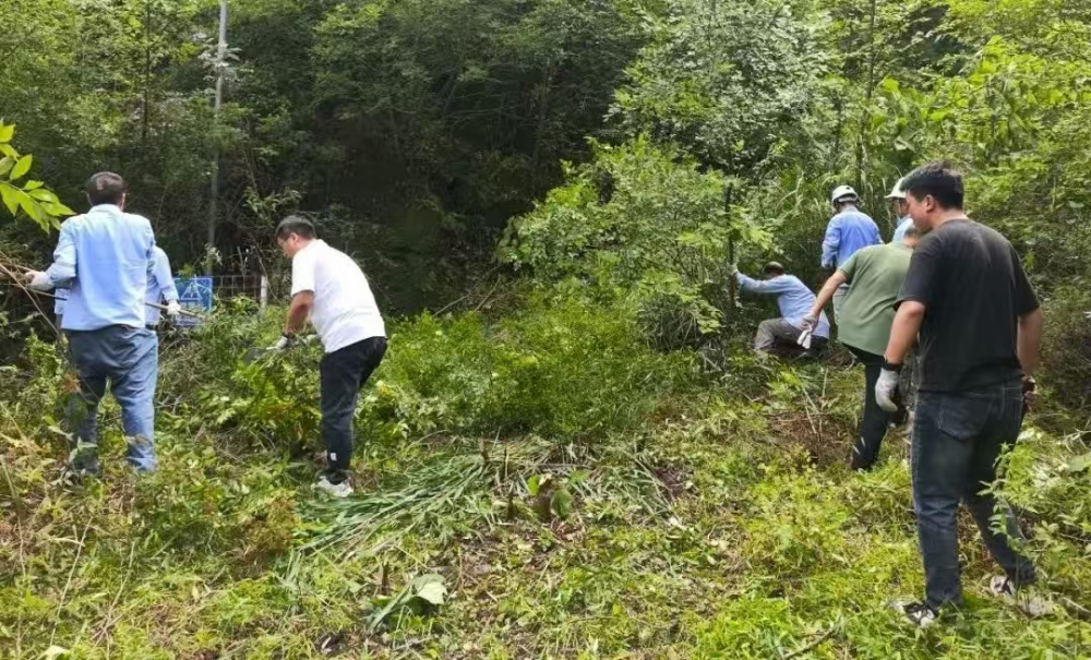 因長期停用,炸藥庫周邊雜草叢生、灌木密布,部分區(qū)域雜草高達兩米,不僅影響安全巡查,還存在多種風險?,F(xiàn)場,職工們手持割草機、鐮刀、鐵鍬等工具,分工協(xié)作:年輕職工主動承擔割草、砍伐重任,老員工則負責理碎石、搬運雜物,黨員先鋒們更是一馬當先,帶頭攻堅復雜區(qū)域。盡管汗水浸透工裝,雙手磨出水泡,但無人喊苦叫累,展現(xiàn)出強大的團隊凝聚力。